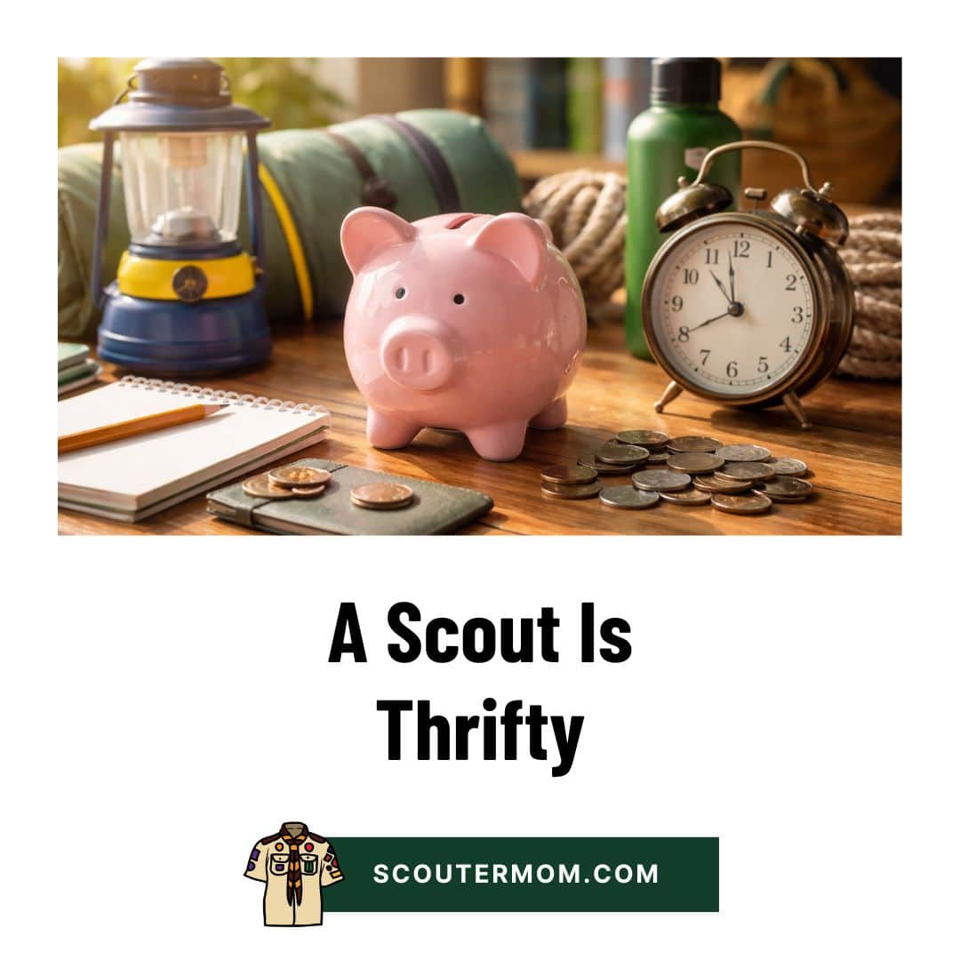 Pramuka juga menabung untuk masa depan. Mungkin Anda menabung untuk perkemahan Pramuka. Mungkin Anda ingin membantu membayar perlengkapan Anda sendiri. Itu berarti berhemat. Ini menunjukkan rasa hormat terhadap uang keluarga Anda dan sumber daya bumi. Itu adalah kebiasaan baik yang akan membantu Anda sepanjang hidup Anda.